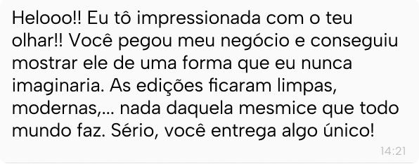 Trabalho criando conteúdos que geram conexão, constância e confiança, sempre alinhados à essência da marca.